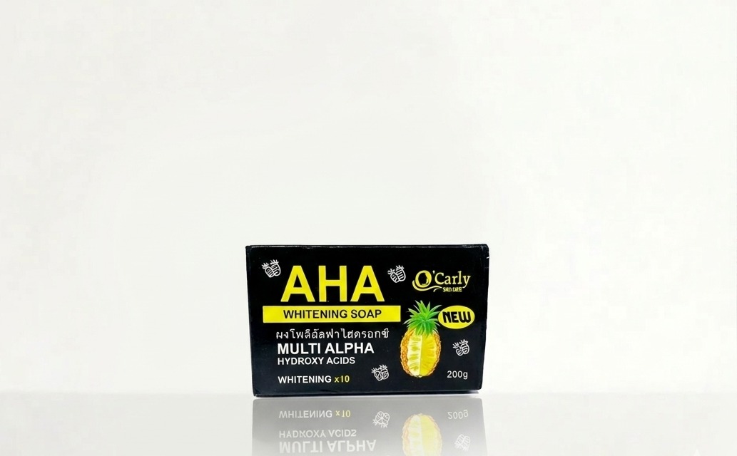 O’Carly AHA Whitening Soap is a skincare product designed for deep cleansing, exfoliation, and skin brightening, often featuring AHA (Alpha Hydroxy Acids), Vitamin C, and Hyaluronic Acid to fade dark spots and even skin tone. It is suitable for face and body use to improve texture and radiance.